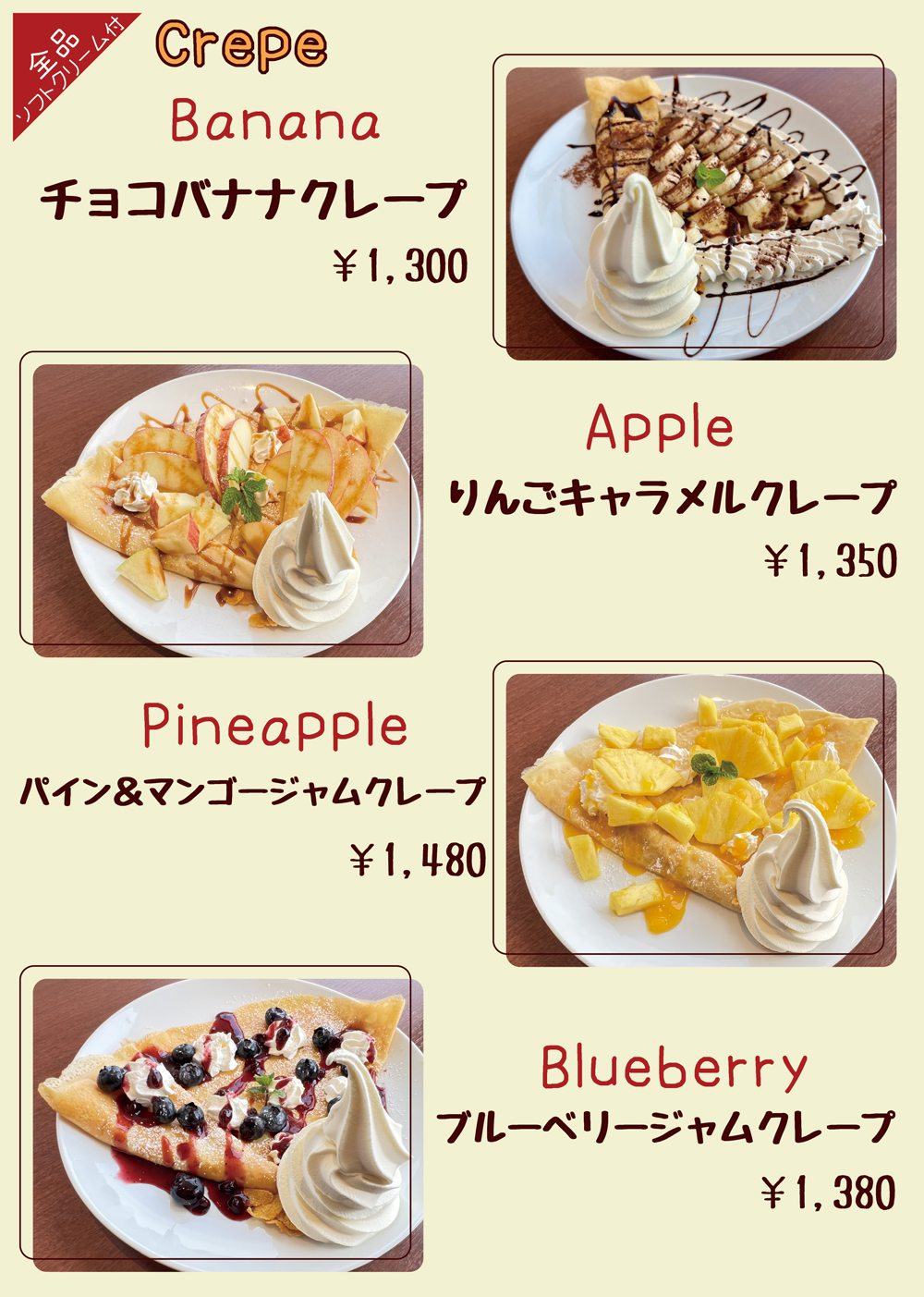 抹茶バナナクレープ 680円
